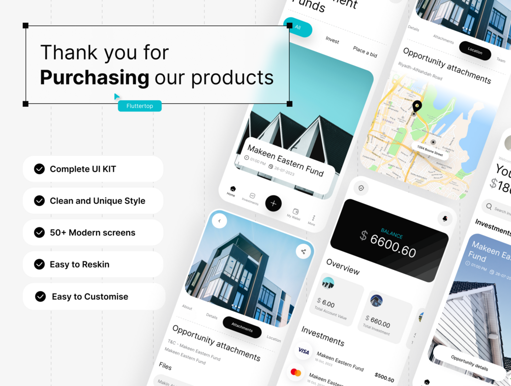Investnest: Real Estate Property Investment Online Marketplace App UI Kit