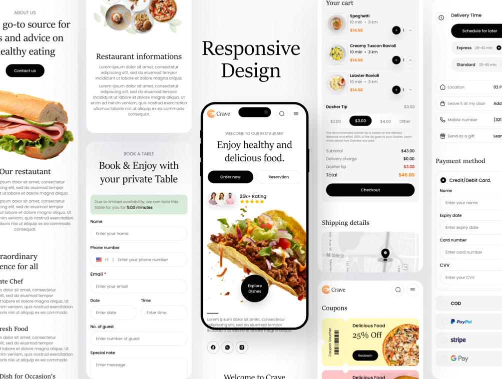 Adaptable Framework: Tailored in Figma, Crave allows effortless customization to fit the unique branding of any food enterprise.