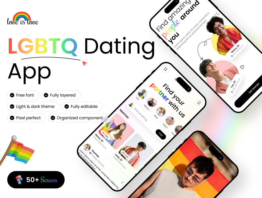 Welcome to LoveisLove, the definitive UI design kit engineered exclusively for creating dynamic, inclusive dating platforms within the LGBTQ+ community. This kit seamlessly integrates the vivacity of the LGBTQ+ color palette with specialized features that promote genuine connections and community-centric engagements.